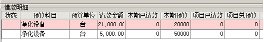我們選擇其中兩項(xiàng),高效過濾器和移動式消毒車,其中高效過濾器預(yù)算金額為20000元、移動式消毒車預(yù)算費(fèi)用為50000元,當(dāng)我們的請款金額小于預(yù)算金額時(shí)候,顯示為正常的白色。