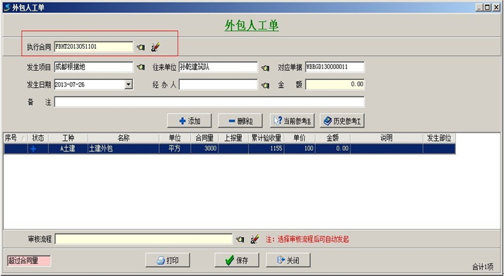 合同驗(yàn)收和合同外零、點(diǎn)工驗(yàn)收,都要建立外包人工單,兩者的區(qū)別在于,前者在外包人工單中執(zhí)行的合同(可以讀取到合同內(nèi)的相關(guān)信息,如合同量、上報(bào)量等),后者在外包人工單中未執(zhí)行合同。