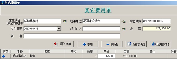 在金石工程項目管理軟件中,其他成本是根據(jù)其他費用單得出,其他成本的內(nèi)容(其他費用單中的內(nèi)容)是根據(jù)軟件基礎(chǔ)信息中費用科目維護來調(diào)用。