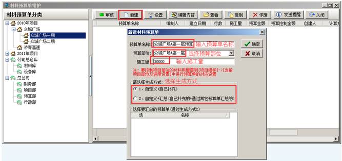注:做好項(xiàng)目的【材料預(yù)算單維護(hù)】及【預(yù)算綁定】是對(duì)該項(xiàng)目材料控件的提前條件。