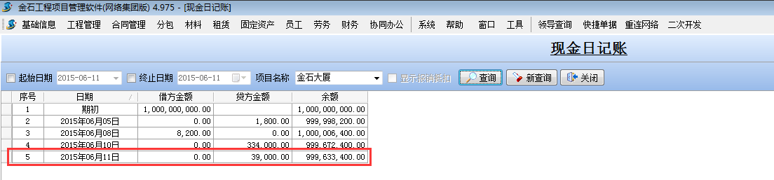 然后我們工地項(xiàng)目管理系統(tǒng)中查詢(xún)一下現(xiàn)金流水賬,如下圖