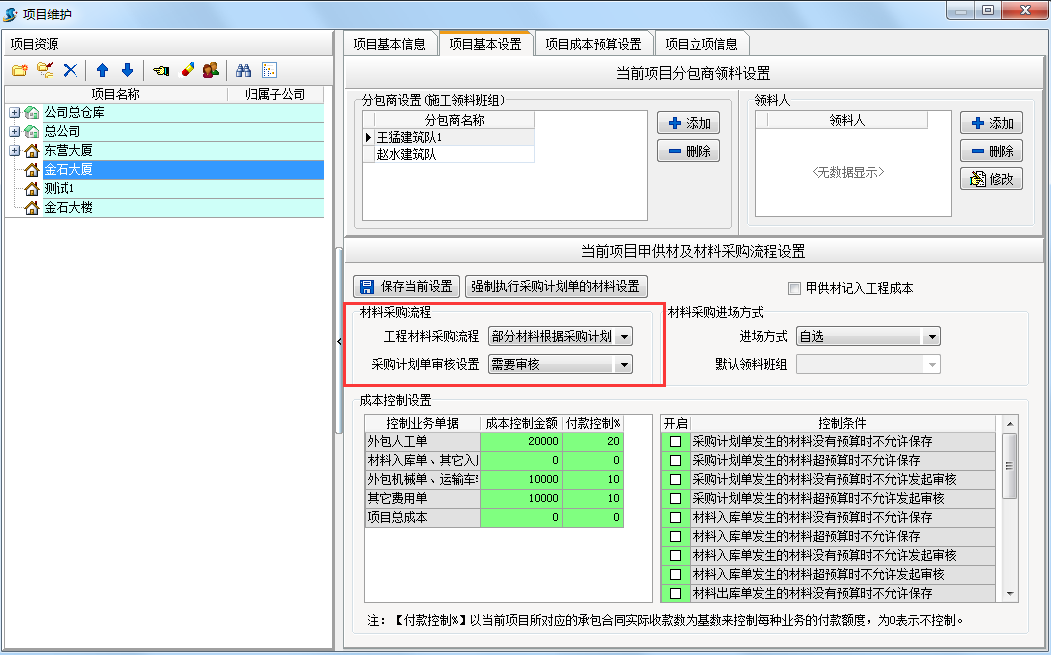 在工程項(xiàng)目管理系統(tǒng)中新建項(xiàng)目時(shí)設(shè)置成本控制金額和付款控制比例。具體設(shè)置方法【工程管理】模塊?【項(xiàng)目維護(hù)】項(xiàng)目基本設(shè)置