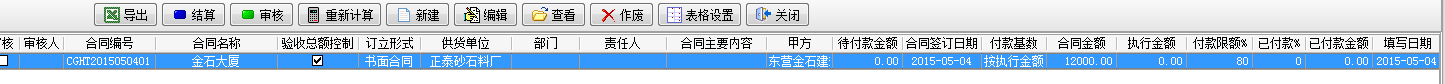 在工程項(xiàng)目管理系統(tǒng)中即通過采購合同驗(yàn)收總額控制選項(xiàng)來控制驗(yàn)收總額。
