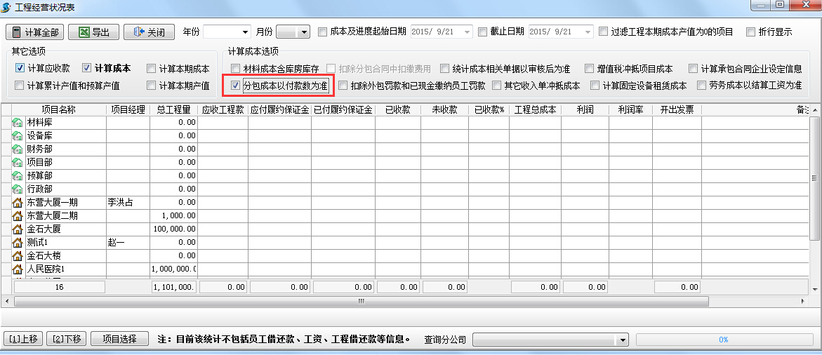 如上圖設置項目為金石大廈后查詢出的結(jié)果。