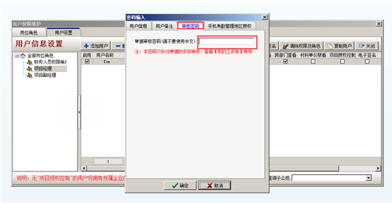 如果該人員有單據(jù)審核的權(quán)限,點擊“審核密碼”,設(shè)置審核密碼。
