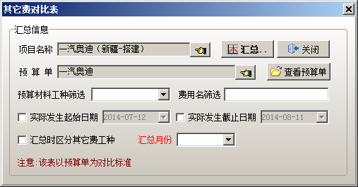 使用時選擇好項目,選擇好預算單,然后點【匯總】按鈕,進行統(tǒng)計。
