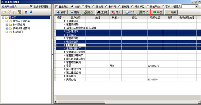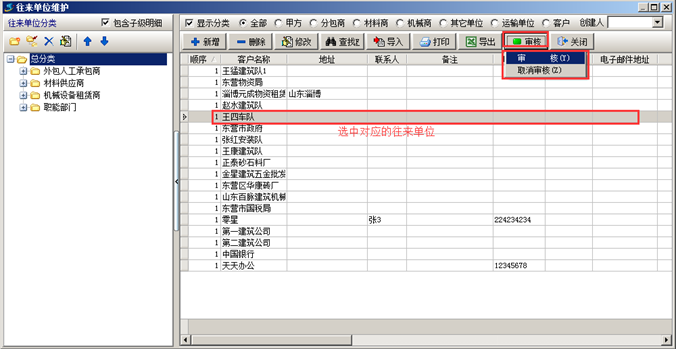 工程項(xiàng)目管理軟件基礎(chǔ)信息-往來單位維護(hù)(審核)