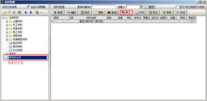 若導(dǎo)入的材料工種不存在,選擇導(dǎo)入規(guī)則;