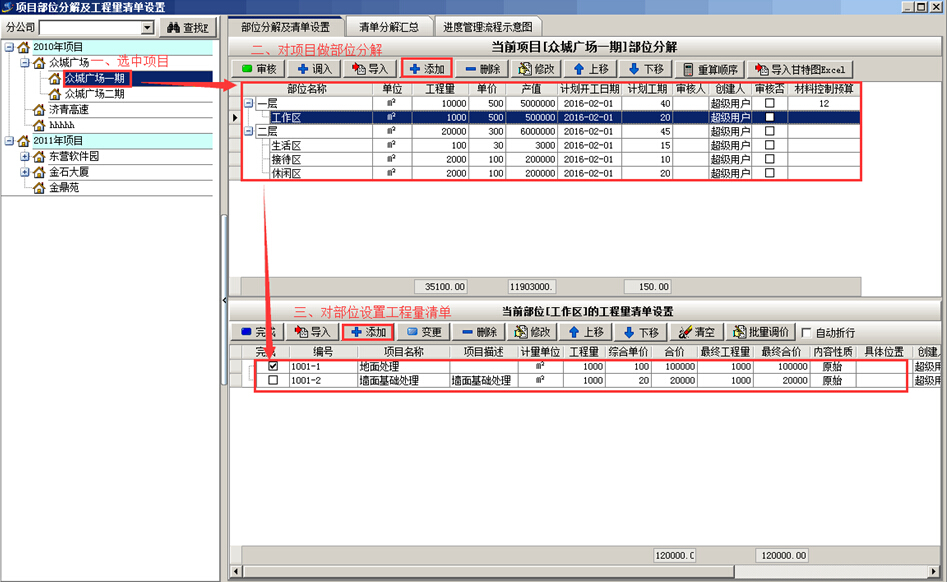 三、工程量清單匯總以及工程量進(jìn)度查詢