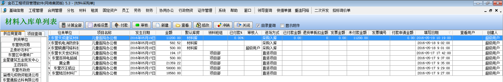 工程項目管理系統(tǒng)為適應(yīng)“營改增”政策升級到5.4版本以后,如下圖: