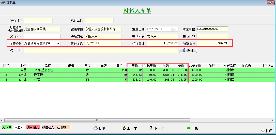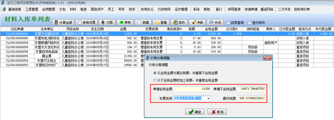 2.在營改增后.以前版本做的單據(jù)如何實現(xiàn)價稅分離調(diào)整?我們以材料入庫單(即材料采購單)為例,進行演示: