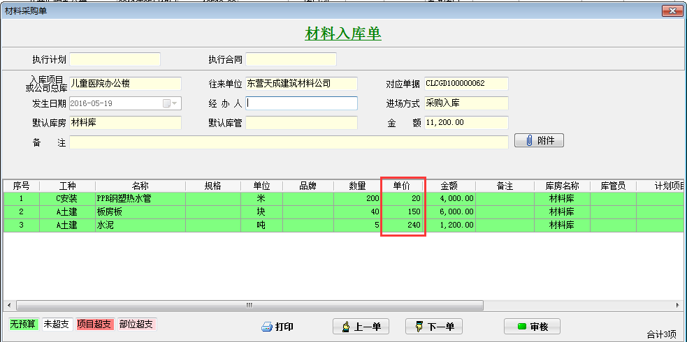 1.以材料采購單為例進行說明。沒有升級之前版本如下圖: