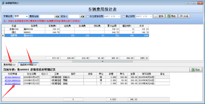 注:當(dāng)前查詢的時(shí)間段必須有【其他費(fèi)用單】明細(xì)發(fā)生過[車輛]及[加油費(fèi)]業(yè)務(wù)信息,且[本期加油量]是根據(jù)“數(shù)量”欄目合計(jì)得出,本期加油量(L/100KM)=本期加油量/[(期末里程—期初里程)/100]