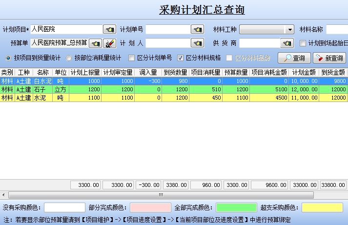 如何在金石工程項目管理軟件中查看材料的“計劃上報量”、“計劃審定量”、“調(diào)入量”、“到貨數(shù)量、項目消耗量”、“預(yù)算數(shù)量”