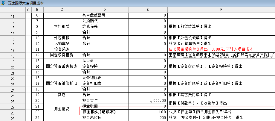 押金損失是計(jì)入成本的,可根據(jù)【項(xiàng)目成本利潤(rùn)】模塊查詢得出(下圖)