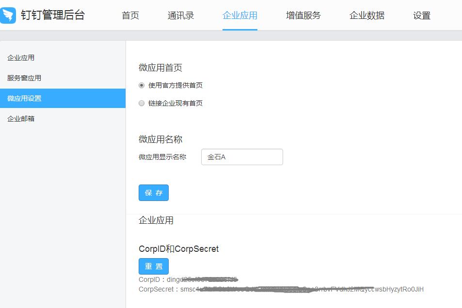 4. 獲取corpid, corpsecret和agentid好后登陸超級(jí)用戶在【系統(tǒng)維護(hù)】-【系統(tǒng)全局設(shè)置】-【企業(yè)認(rèn)證設(shè)置】填寫(xiě)釘釘認(rèn)證信息。(此處需要開(kāi)發(fā)商授權(quán))