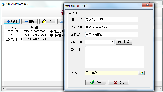 2.用老板個人賬戶新建個銀行帳號,期初余額為0(因?yàn)椴恍枰涗浝习逅饺藥ぬ栍囝~)