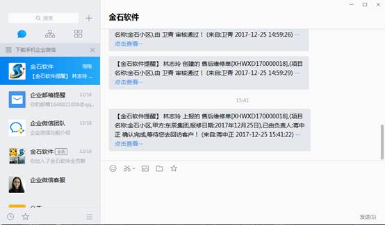 此時(shí)負(fù)責(zé)人會(huì)收到微信提醒,提醒其對該項(xiàng)目進(jìn)行跟蹤及維修情況的必要登記,如下圖
