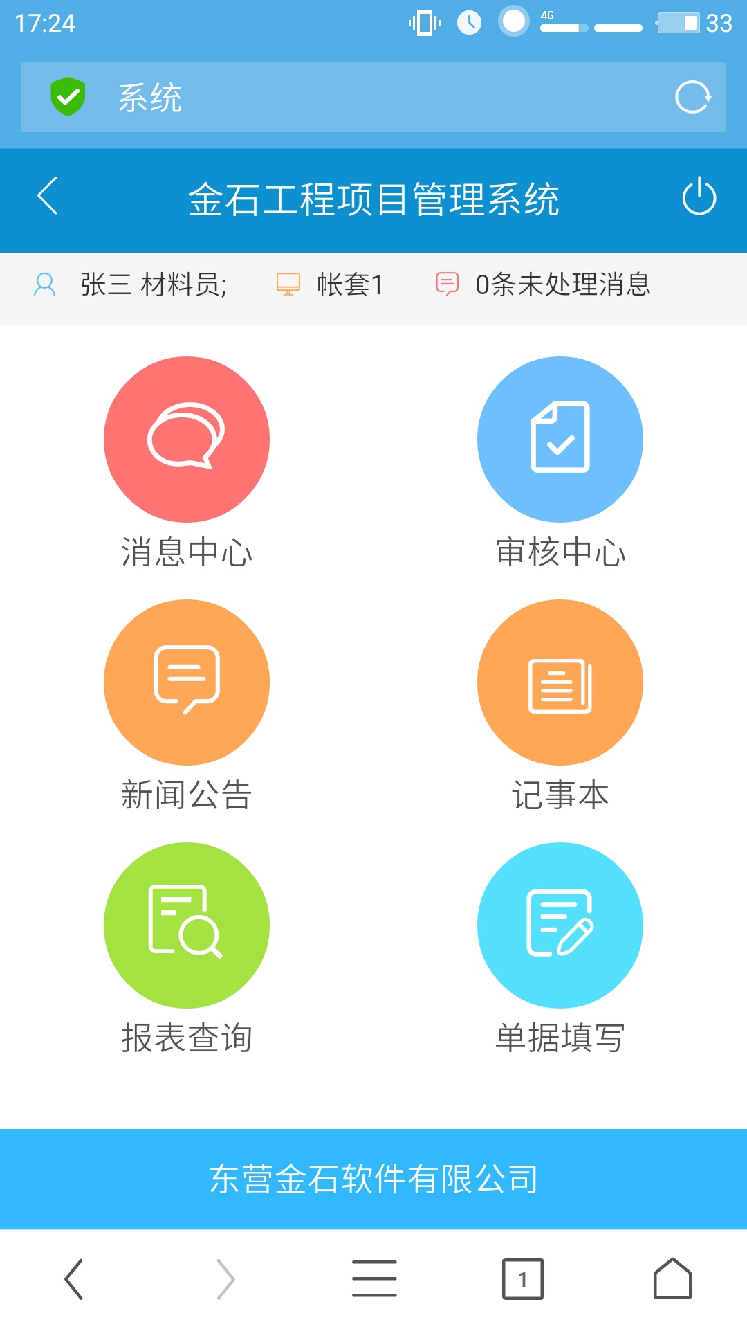(3) Browser端主要應(yīng)用在移動設(shè)備終端,目前已經(jīng)與微信無縫整合,只需安裝微信就可正常使用各項功能,主要用于業(yè)務(wù)單據(jù)審核、微信消息提醒、現(xiàn)場進度填報、部分報表資料文檔查詢、部分單據(jù)填寫等。