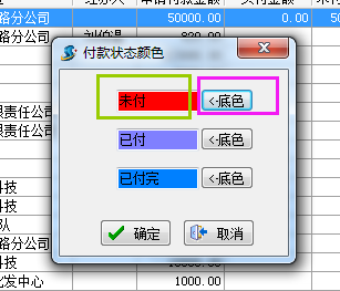 如下圖:點(diǎn)“未付”兩個(gè)字設(shè)置字體的顏色;點(diǎn)“底色”設(shè)置背景色