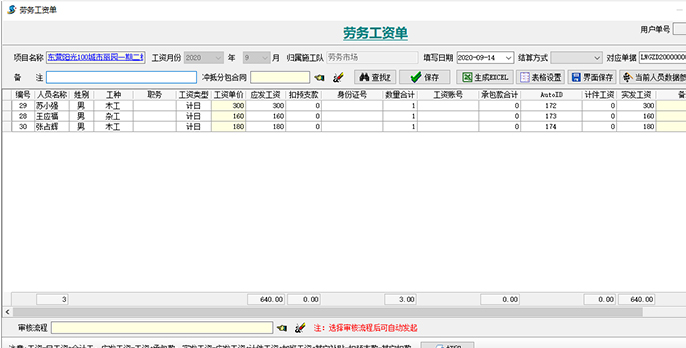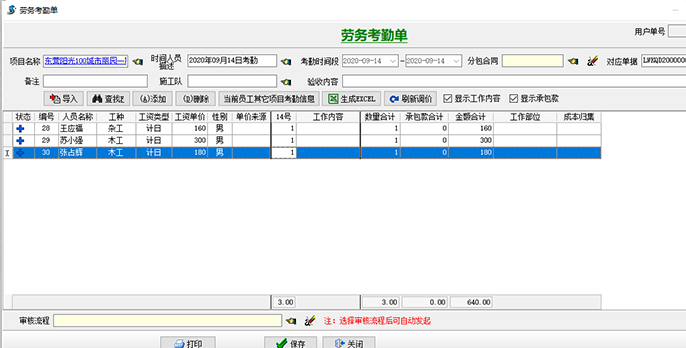 1、項目部以【勞務(wù)考勤單】為勞務(wù)進(jìn)出場的日報,需每日完成。月底根據(jù)【勞務(wù)考勤單】生成月度工資表進(jìn)行結(jié)算