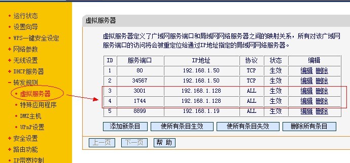 1. 靜態(tài)ip接入的用戶,只需要在路由器中開放1744和3001兩個端口,
