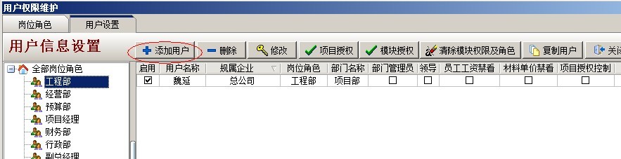 打開(kāi)用戶(hù)權(quán)限設(shè)置后,首先設(shè)置【權(quán)限角色】,下圖所示: