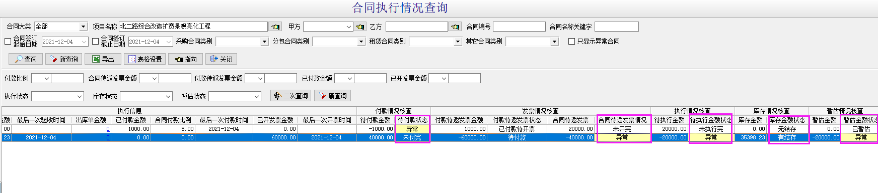 待執(zhí)行金額:合同金額-執(zhí)行金額