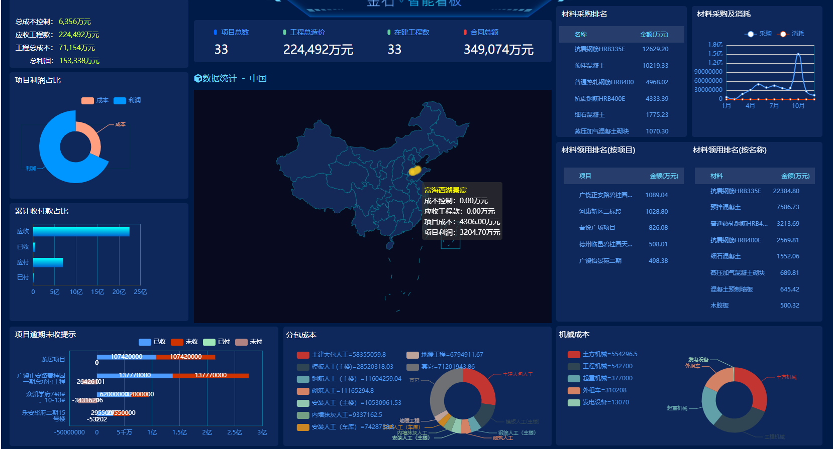 所涉及的材料成本、分包成本、租賃成本、固定資本和其他雜費(fèi),包括預(yù)算成本、計(jì)劃成本、計(jì)劃成本等全過程的成本計(jì)算和控制系統(tǒng)一次解決、最后,計(jì)算資金的靜態(tài)管理規(guī)模,實(shí)施項(xiàng)目預(yù)算和項(xiàng)目進(jìn)度計(jì)劃監(jiān)督與控制列入實(shí)時(shí)的管理路軌,使公司及項(xiàng)目各職能部門可隨時(shí)監(jiān)管項(xiàng)目的進(jìn)展及預(yù)算執(zhí)行情況,以做出決策。