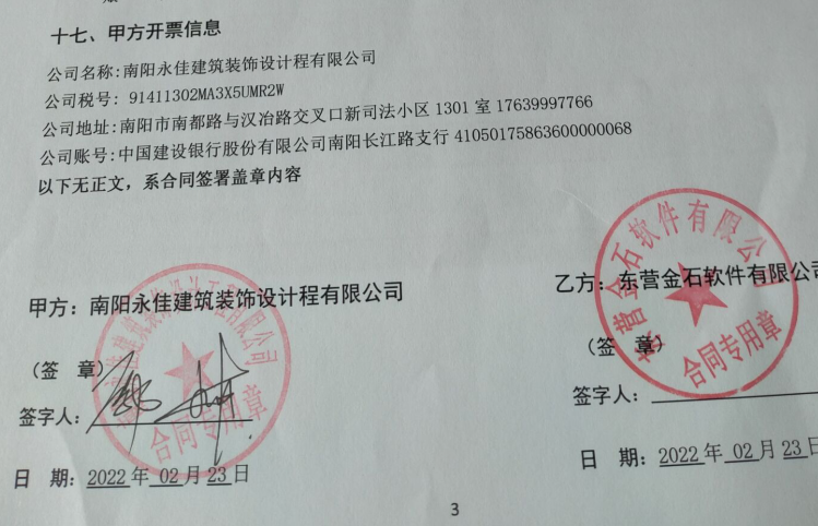 金石軟件簽約南陽(yáng)永佳建筑裝飾設(shè)計(jì)工程有限公司