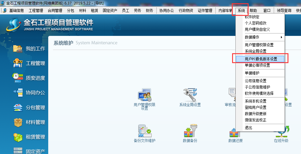 在使用金石工程項(xiàng)目管理軟件的過(guò)程中經(jīng)常會(huì)碰到有的同事升級(jí)了較新版本的新功能,其他同事還在使用老版本不能更好的體驗(yàn)金石軟件新功能,在6.35版本中我們對(duì)此進(jìn)行了限制,可要求所有用戶均升級(jí)最新版本或指定的版本,否則系統(tǒng)將將強(qiáng)制升級(jí),操作流程如下: