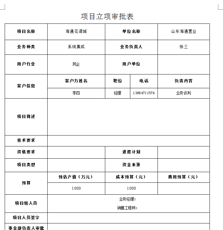 項目收集單:主要是用于項目投標(biāo)前的收集,公司銷售人員將在“政府網(wǎng)站” 、“自己開拓”等項目前期信息歸檔并走相應(yīng)的公司內(nèi)審批流程,確定哪些項目我們可以去參與投標(biāo)。