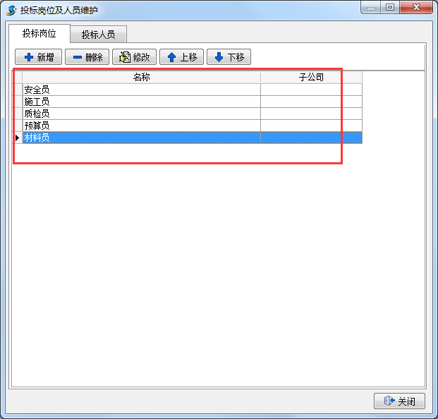 錄入好姓名后,選擇相對應(yīng)的崗位(選擇崗位時,可以一人設(shè)多崗),依次添加好投標(biāo)人員后,關(guān)閉該窗口,如下圖: