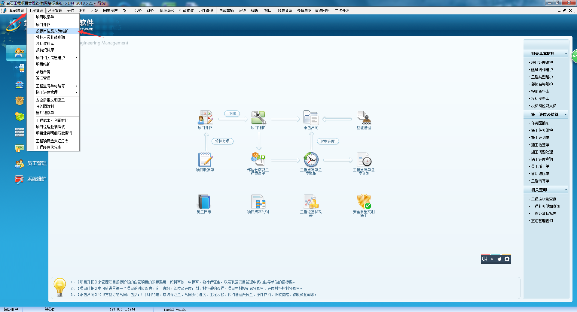 首先在軟件菜單欄點擊【工程管理】,打開【投標(biāo)崗位及人員維護】,如下圖: