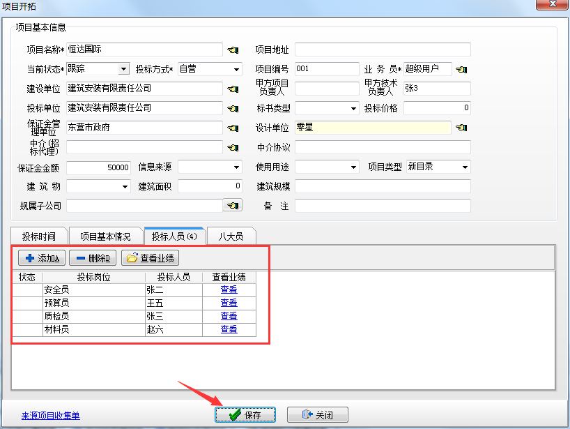 添加完投標(biāo)人員后,點擊保存該項目新建完成,如下圖: