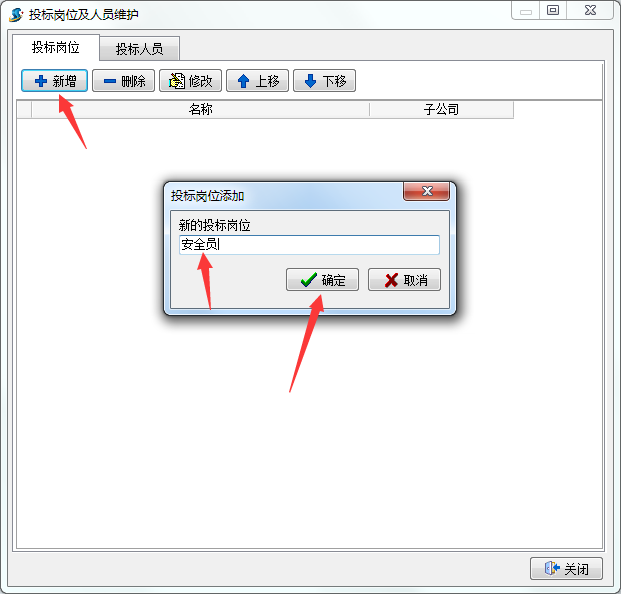 在新打開的維護窗口中,點擊新增,依次添加需要的投標(biāo)崗位,如下圖: