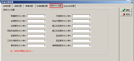 附件大小設置: