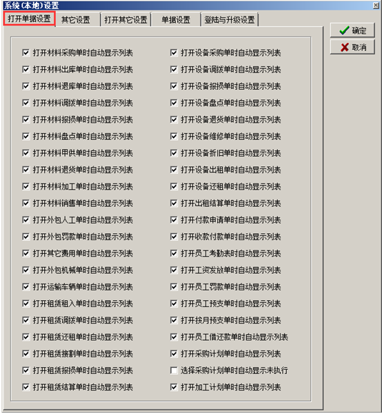 單據(jù)設置: