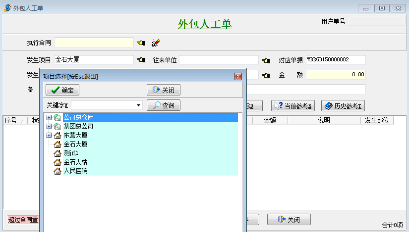 工程項目管理軟件設(shè)置項目隱藏后錄單據(jù)時不顯示隱藏項目,如下圖