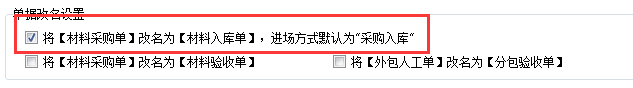 2、單據(jù)改名設置,這里可以將【材料采購單】改為【材料入庫單】,或者改為【材料驗收單】