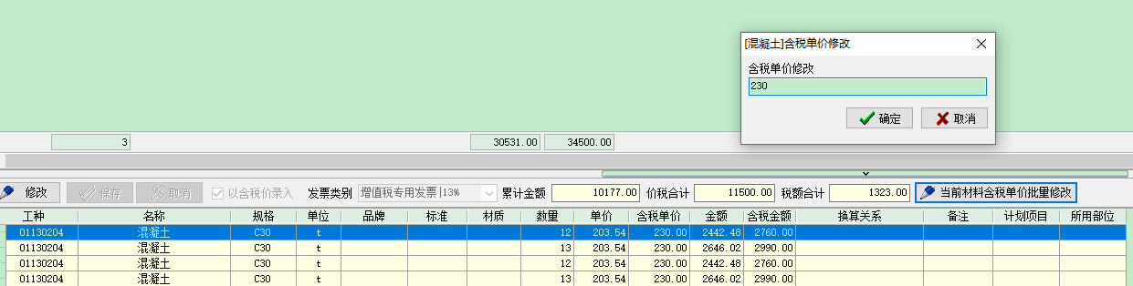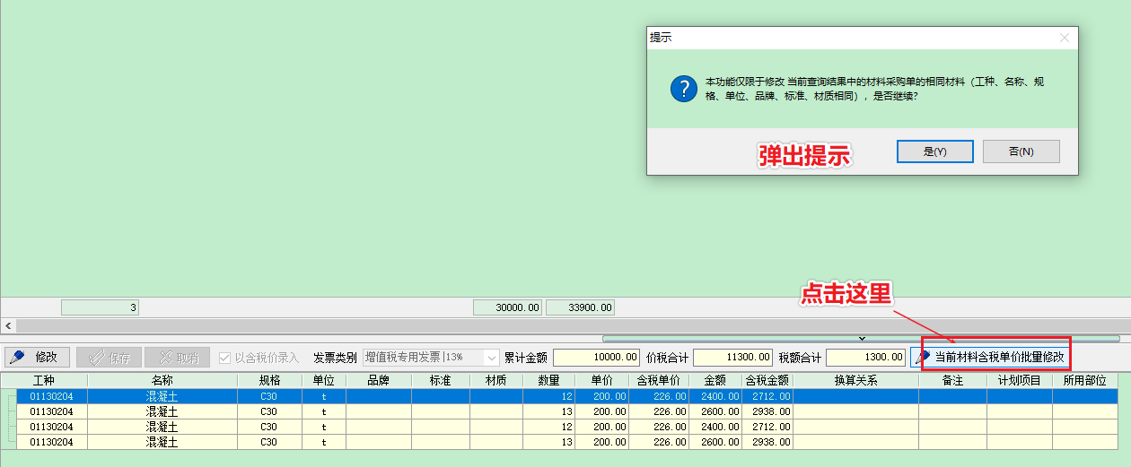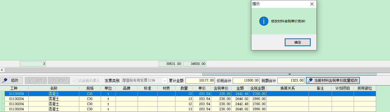2 批量修改(適用于材料名稱規(guī)格單位品牌標準材質(zhì)完全一致的情況)