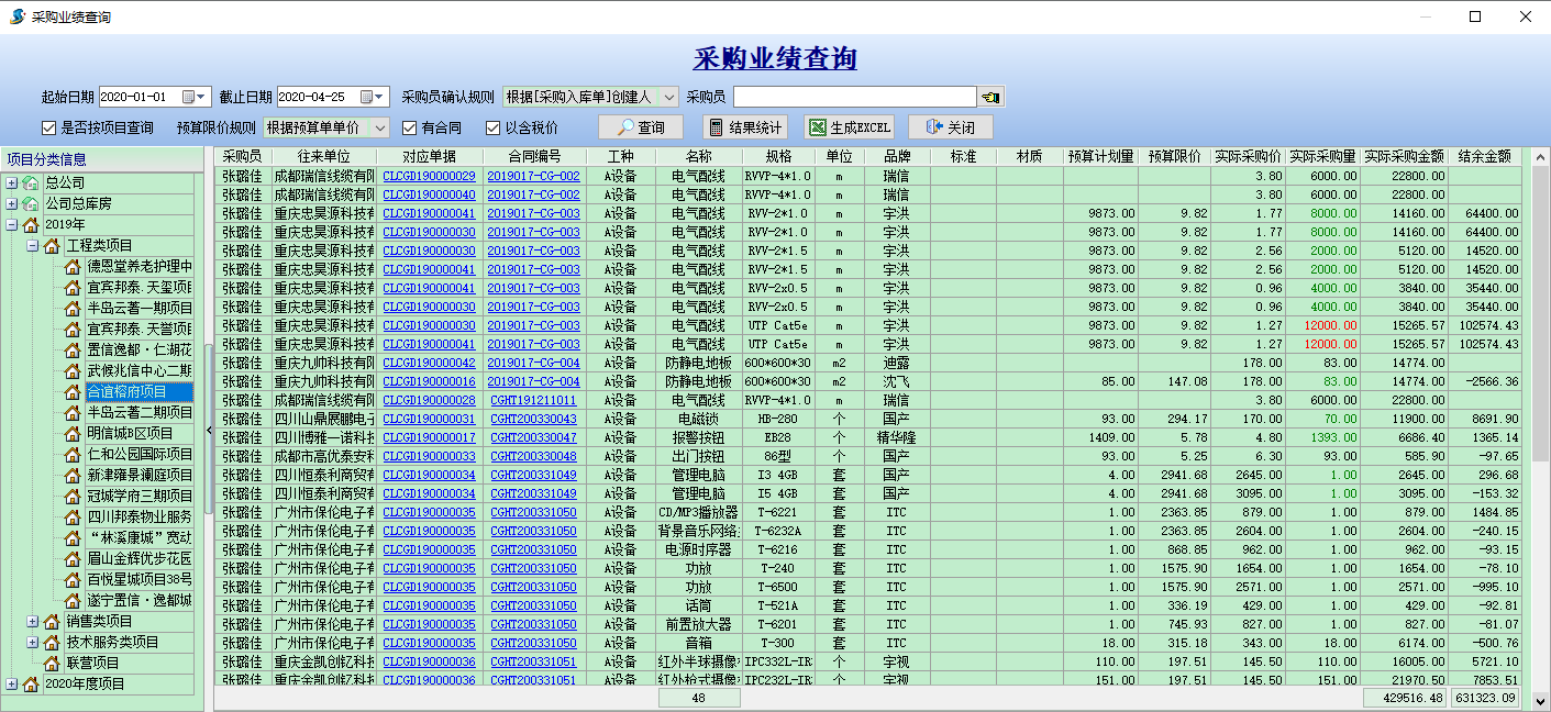 1、特定采購(gòu)員下按項(xiàng)目查詢