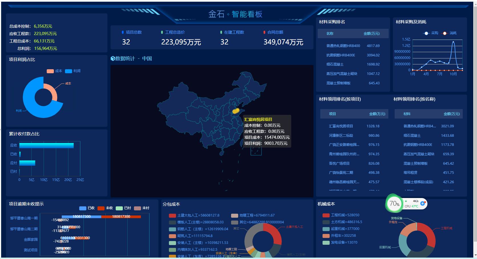 應(yīng)廣大客戶的建議反饋及市場(chǎng)調(diào)研結(jié)果,金石軟件增加項(xiàng)目智能看板功能 。