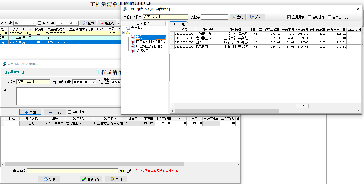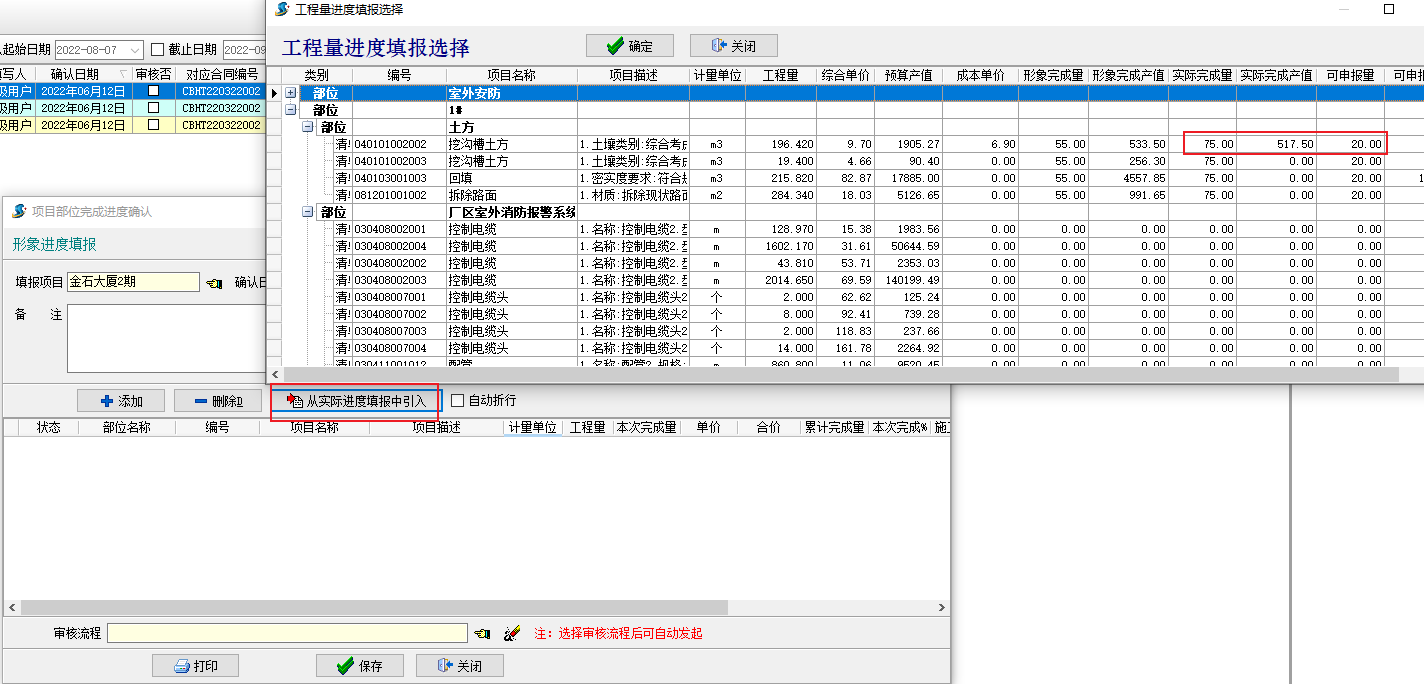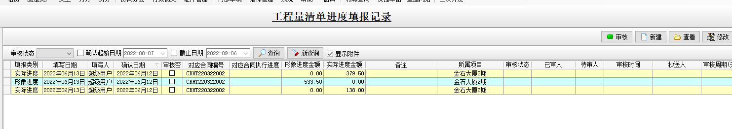 金石工程管理軟件新增形象進(jìn)度金額、實(shí)際進(jìn)度金額功能