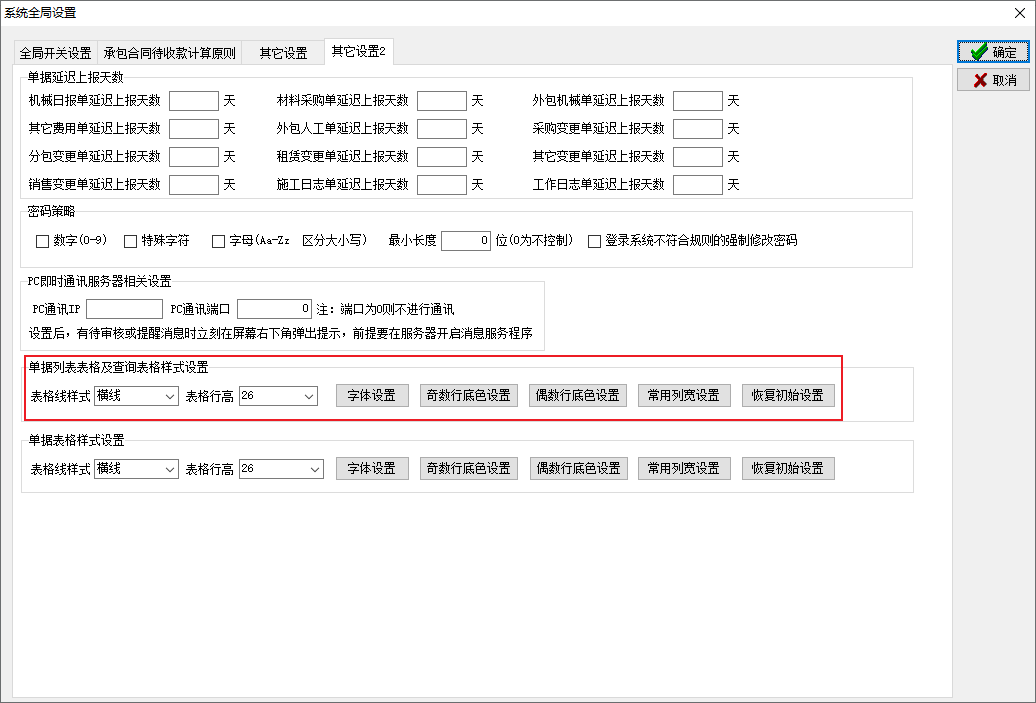 金石工程管理軟件新增單據(jù)列表表格及查詢表格樣式設(shè)置