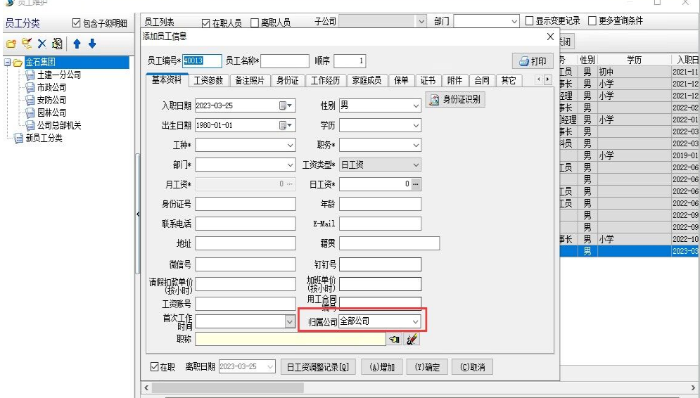 金石軟件升級(jí)——新增員工維護(hù)歸屬