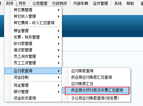 在此窗口中我們可以看到,同一項(xiàng)目名稱、不同往來單位,不同開票單位對應(yīng)的采購金額、發(fā)票金額、發(fā)票金額和發(fā)票減付款金額。
