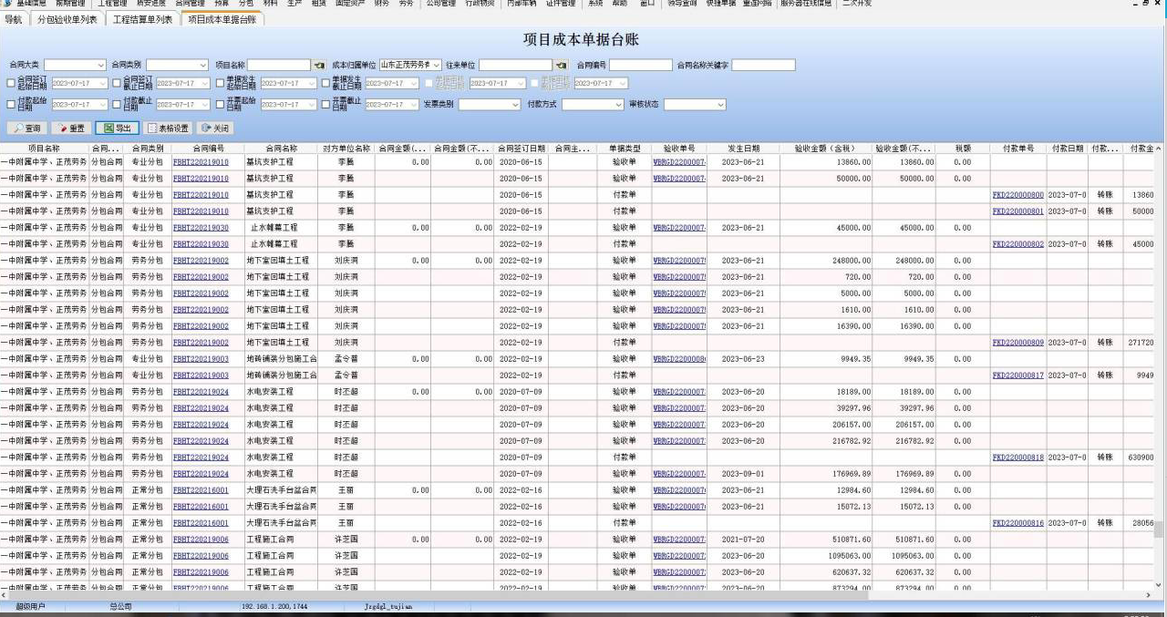1、項(xiàng)目成本單據(jù)臺(tái)賬表金額類字段增加腳標(biāo)匯總。
