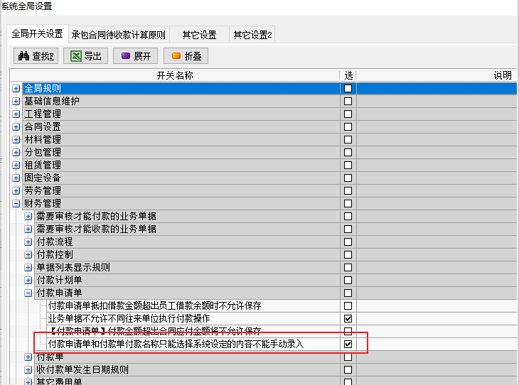 3、付款申請(qǐng)單和付款單付款名稱只能選擇系統(tǒng)設(shè)定的內(nèi)容不能手動(dòng)錄入”