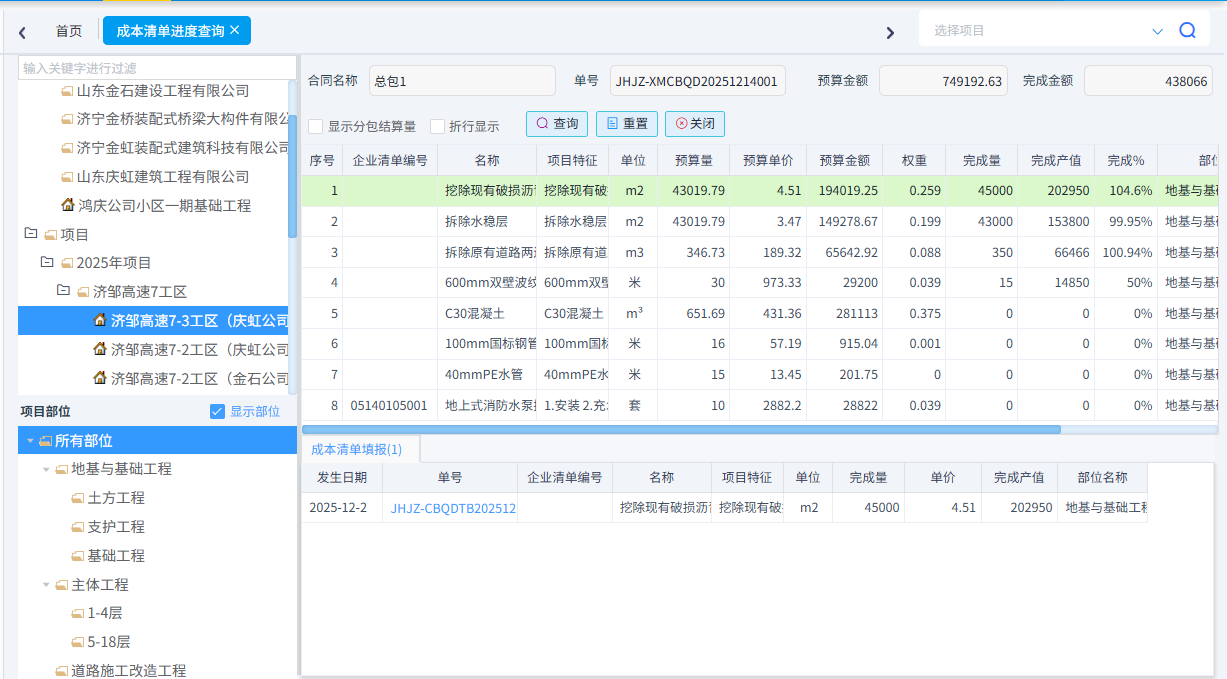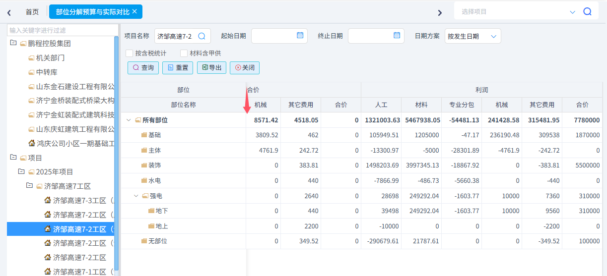 可以根據(jù)需求統(tǒng)計成本清單進(jìn)度、合同清單進(jìn)度(四算對比)、項目部位實際發(fā)生以及部位分解預(yù)算與實際發(fā)生。